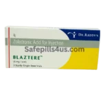 Blaztere 4 mg contains zoledronic acid 4 mg. It is a bisphosphonate medicine used to slow bone breakdown and help lower high calcium levels in the blood.