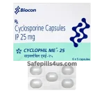 Cyclophil Me 25mg is a prescription capsule containing cyclosporine in a microemulsion form for steady absorption. It helps control an overactive immune system, which is why it’s commonly used in transplant care to prevent rejection and in autoimmune conditions when other treatments haven’t worked well enough. Each capsule delivers 25 mg of cyclosporine. This is a powerful medicine that requires close medical supervision and regular check‑ins. Always use Cyclophil Me 25mg exactly as your healthcare provider directs.