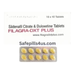 Filagra DXT Plus is a combination medication containing 100 mg Sildenafil Citrate and 60 mg Duloxetine, formulated to treat both erectile dysfunction (ED) and premature ejaculation (PE) in men. Sildenafil Citrate is a phosphodiesterase type 5 (PDE5) inhibitor that enhances blood flow to the penis, aiding in achieving and maintaining an erection. Duloxetine is a selective serotonin and norepinephrine reuptake inhibitor (SSNRI) that helps delay ejaculation by increasing serotonin levels in the brain, thereby improving control over ejaculation.