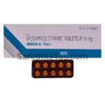 Moza 5 Mg (mosapride) supports gastric motility. It’s often prescribed for GERD-related symptoms, functional dyspepsia, bloating, and delayed gastric emptying—always under medical supervision.