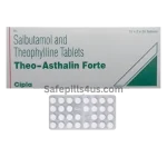 Theo Asthalin Forte (Salbutamol / Theophylline) is a prescription oral bronchodilator designed to help manage asthma and COPD symptoms like wheezing, chest tightness, and shortness of breath. It combines two time‑tested ingredients to relax airway muscles from different angles, so breathing feels easier throughout the day when used exactly as your provider recommends.