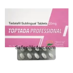 Toptada Professional 20 mg is a tadalafil tablet designed to help adult men manage erectile dysfunction in a steady, reliable way. It supports stronger, longer lasting erections when you are sexually aroused, so intimacy can feel less stressful and more natural again. The 20 mg strength is popular for as needed use, and the tablet is easy to take with a small sip of water. No fluff here just a straightforward ED option trusted around the world.