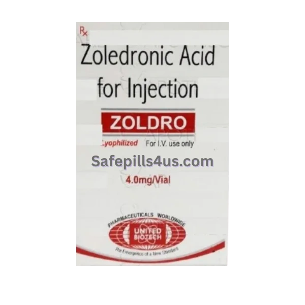Zoldro 4 mg contains zoledronic acid 4 mg, a bisphosphonate that slows bone breakdown and helps lower high calcium levels in the blood.